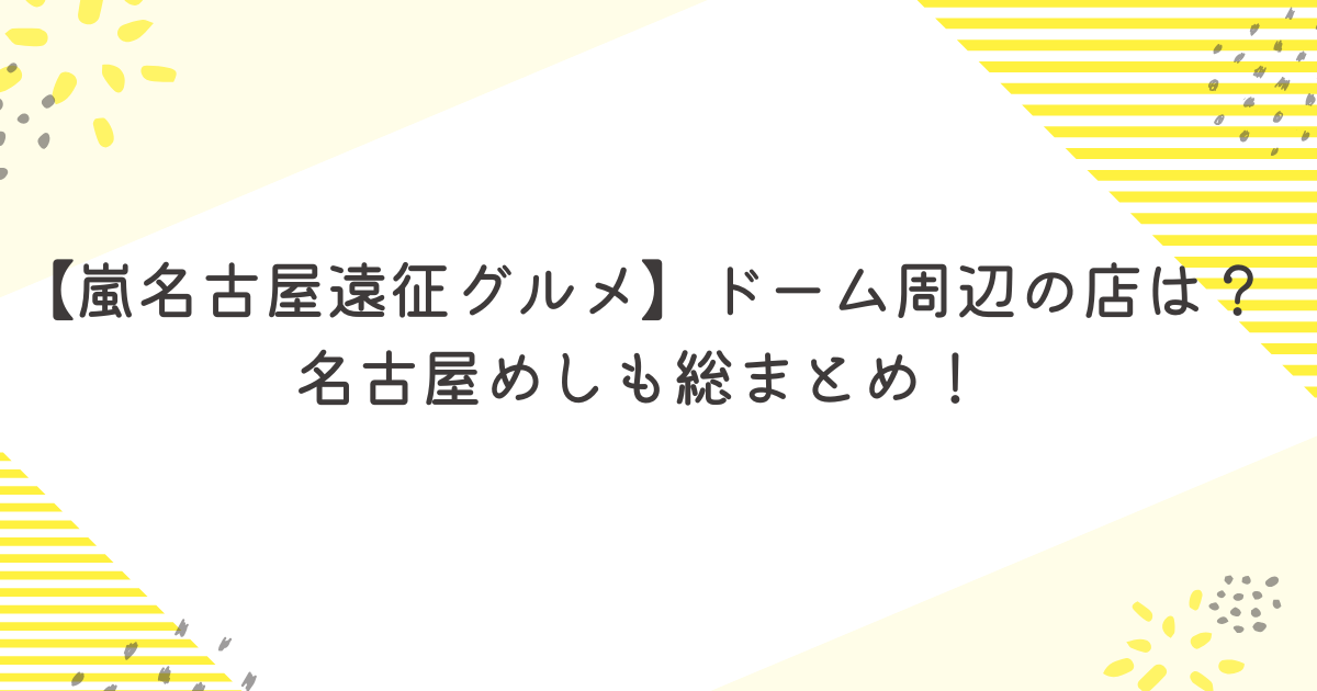今回は、嵐ライブ名古屋遠征に合わせたグルメ・観光スポットについてまとめていきました。