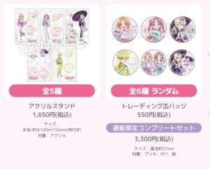 アクリルスタンドなどの小物から普段づかいしやすいアイテムまで、いろいろな種類がそろっています。